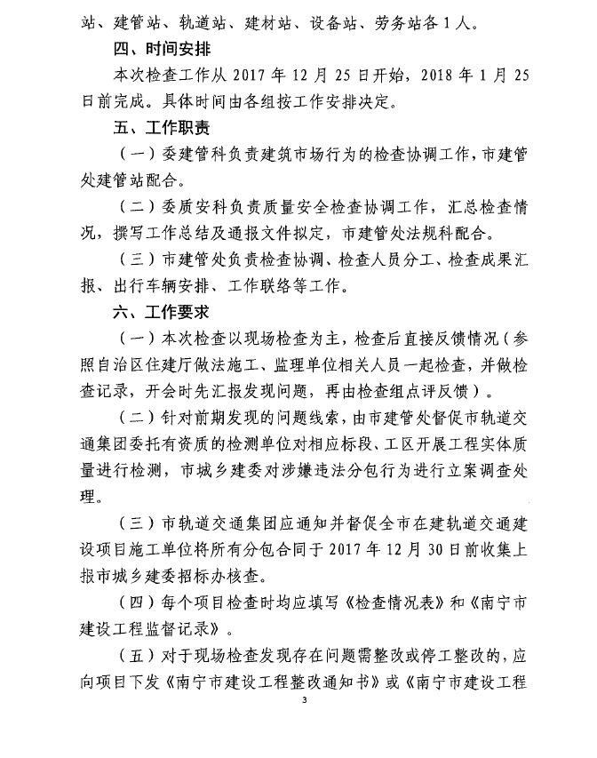 南宁市城乡建设委员会关于开展南宁市轨道交通工程建筑市场暨质量安全大检查的通知—南建质安〔2017〕136号